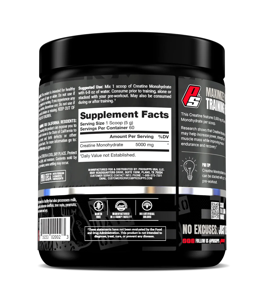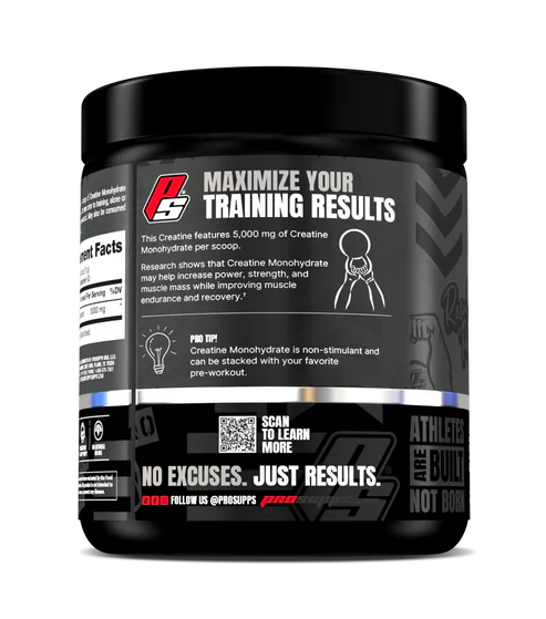 Maximiza los resultados de tu entrenamiento con el suplemento en polvo de creatina, posiblemente el suplemento más popular y definitivamente el más estudiado del mercado actual. ProSupps® Creatine contiene 5000 mg de monohidrato de creatina por cucharada. Toma una cucharada si eres principiante o dos cucharadas si eres avanzado antes de hacer ejercicio para mejorar el rendimiento en el entrenamiento.