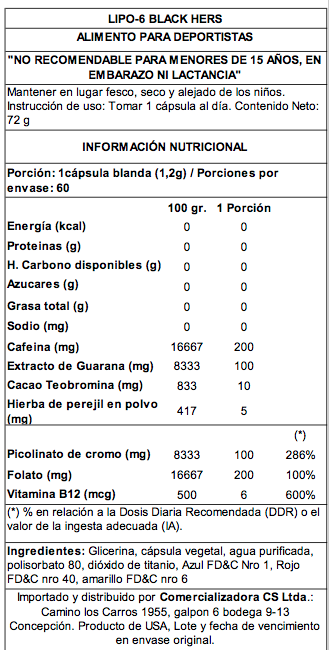 LIPO-6 BLACK HERS UC te ayuda a acelerar tu metabolismo para estimular la quema de calorías. Además ayuda al control del apetito y ansiedad, para prevenir los antojos de comida y comer en exceso. También aumenta la energía y el estado de alerta o concentración, por lo que puede mantener su nivel de actividad alto mientras hace dieta.