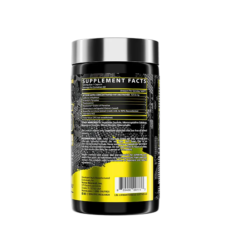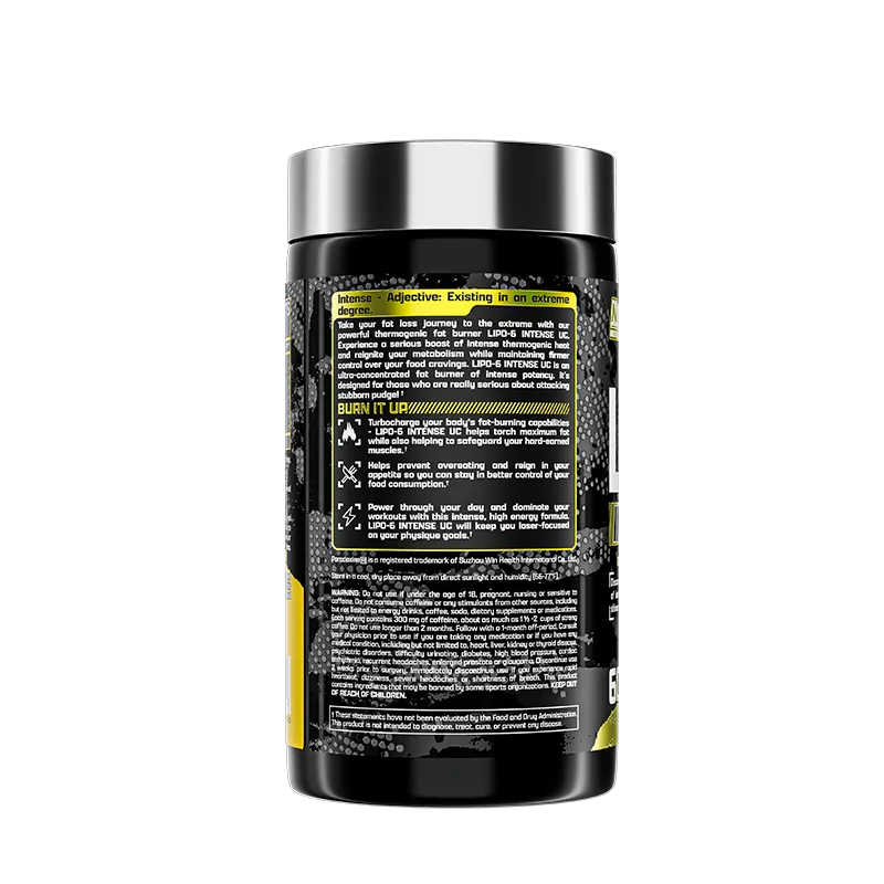 LIPO-6 BLACK INTENSE es un quemador de grasas potente! Es una fórmula que puedes sentir un minutos y muy duradera. Está diseñado para brindarle el apoyo de pérdida de peso más sólido y completo, energía intensa y control del apetito.